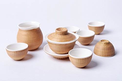 到了清朝,市面上出現了一種竹編茶具,此類茶具是由瓷胎搭配外部竹編包裹而成,內胎多為陶瓷材質,包裹部分選用精挑 細選的慈竹,經過破竹、去節(jié)、劃絲等十幾道工序,加工后的竹絲細如青絲,經上色處理后,按茶具的形態(tài)大小編織而成,形成嚴密包裹胎體的外衣。且在泡茶過程中加上竹編外衣的保護,可 減少茶具對皮膚造成的灼熱感。