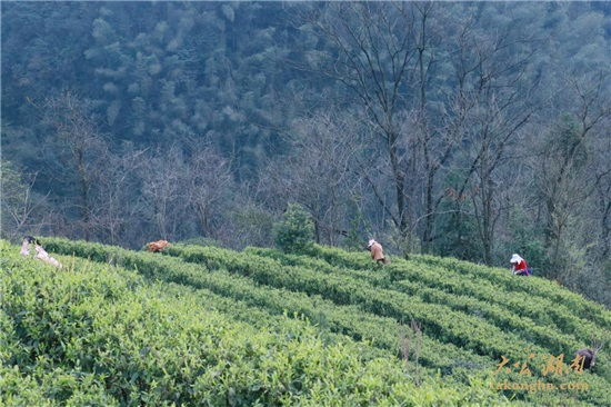 “這一片基地已經(jīng)是今年第二次采摘了,今年天氣好,早茶生長很快,品質(zhì)也很高。”春日暖陽照耀下,湖南省常德市桃源縣楊溪橋鎮(zhèn)蔡家塘村的里寶山有機(jī)茶園基地,迎來了早茶采摘的黃金時(shí)間。采茶工們正在動作熟練的采摘茶葉,桃源縣君和野茶開發(fā)有限公司董事長詹立君興致勃勃地向記者介紹著里寶山有機(jī)茶園基地情況和今年茶葉的長勢。