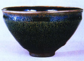 建窯鷓鴣斑星盞 宋由于斗茶需要比較水痕,顏色較深的建窯瓷成為了宋代流行的茶具。