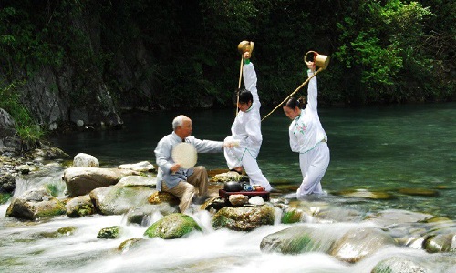 還有一些高雅的茶藝表演,是蒙頂山“禪茶”中所獨(dú)創(chuàng)的十八道獻(xiàn)茶技藝。相傳“龍行十八式”茶技是北宋高僧禪惠大師在蒙頂山結(jié)廬清修時(shí)所創(chuàng)。過去作為僧人修行的一門功課,“龍行十八式”茶藝只在蒙頂山僧人中流傳,直到清代才逐漸傳入民間。創(chuàng)下融茶道、武術(shù)、舞蹈、禪學(xué)、易理為一體的茶技-蒙頂派“龍行十八式”。佛教文化和茶文化的水乳交融,更奠定了蒙山作為世界茶文化圣山的至尊地位。