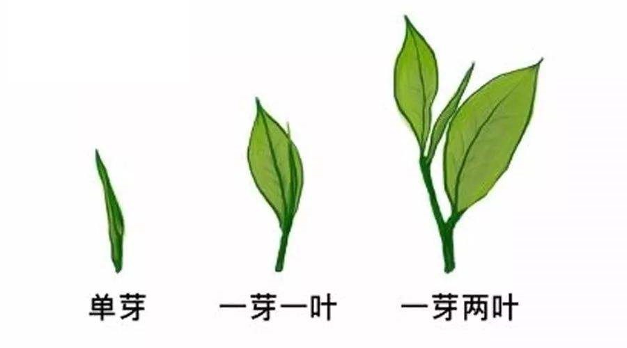 一槍一旗:一芽一葉,因?yàn)椴柩课词嬲箷r(shí)尖細(xì)如槍?zhuān)枞~已舒展時(shí)如旗幟。又稱(chēng)”中芽”。