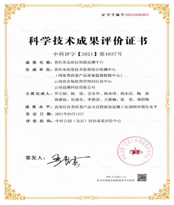 日前,第三方專業(yè)科技成果評(píng)價(jià)機(jī)構(gòu)依據(jù)科技部《科學(xué)技術(shù)評(píng)價(jià)辦法》,組織同行專家對(duì)國家普洱茶產(chǎn)品質(zhì)量監(jiān)督檢驗(yàn)中心完成的“普洱茶品質(zhì)區(qū)塊鏈追溯平臺(tái)”項(xiàng)目科技成果開展評(píng)價(jià)。