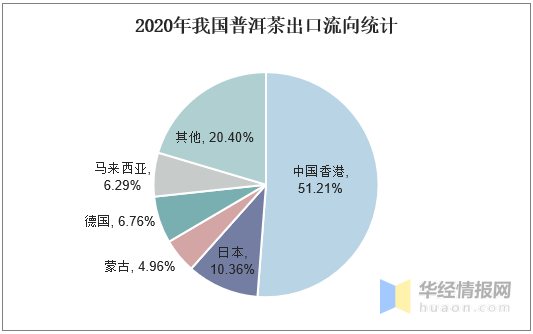 在海外國(guó)家當(dāng)中日本、馬來(lái)西亞等國(guó)是我國(guó)普洱茶出口主要對(duì)象,2020年除51.21%的出口普洱茶流入香港以外,日本出口量占到我國(guó)普洱茶出口總量的10.36%。