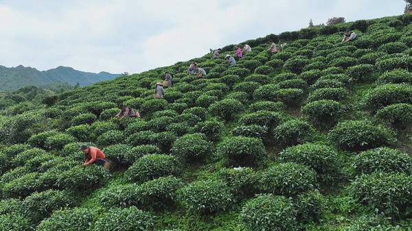 “鄉(xiāng)村振興產業(yè)富,山上采茶搖錢樹,片片是金滿枝處,交易市場為農富,茶青價格創(chuàng)天價,短短幾天奪千萬,群眾腰包鼓起來,家家戶戶樂開懷,幸福不忘黨恩情”茶農們邊忙著采收夏茶,邊唱著歌頌黨的山歌,增收致富的喜悅溢于言表。