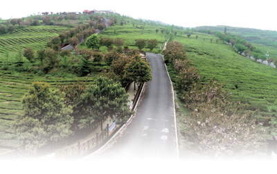 看過(guò)新茶山,我們又驅(qū)車趕到他和戰(zhàn)友們開(kāi)發(fā)了整整十年的萬(wàn)家山觀光茶園。一條水泥路轉(zhuǎn)了十幾圈方抵山頂。這里有圍欄和觀景臺(tái),有辦公區(qū)、會(huì)議廳、品茶室,有通往各個(gè)景區(qū)的木板棧道,有造型優(yōu)美的白色涼棚。登高遠(yuǎn)眺,群山起伏連綿,一條條公路蜿蜒其間,串連起一個(gè)個(gè)粉墻烏瓦的村莊。遠(yuǎn)近山坡上,遍布一排排齊整的茶樹(shù),仿佛層層碧濤連綿不絕。